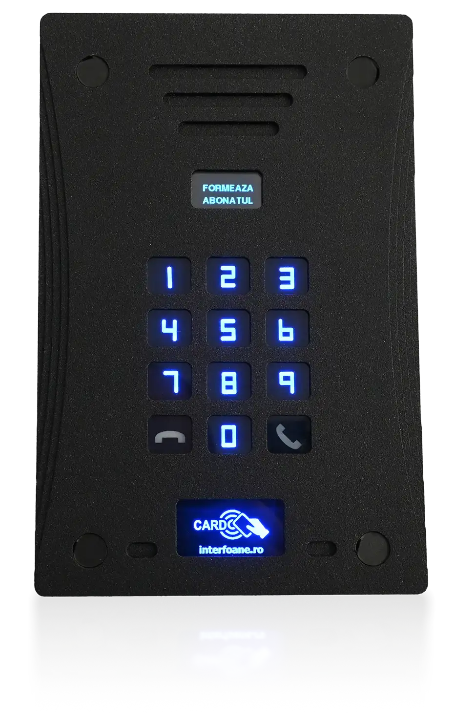 se pot instala 2–3 panouri de comandă pentru mai multe intrări, toate conectate la aceeași unitate.